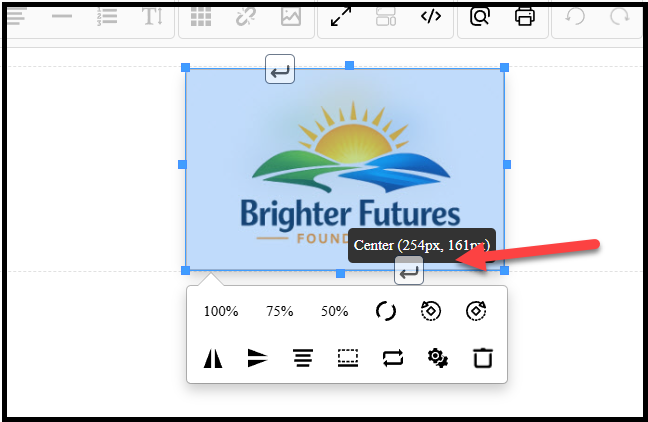 Note: If you insert an image, click the arrow icon to continue writing below it.
