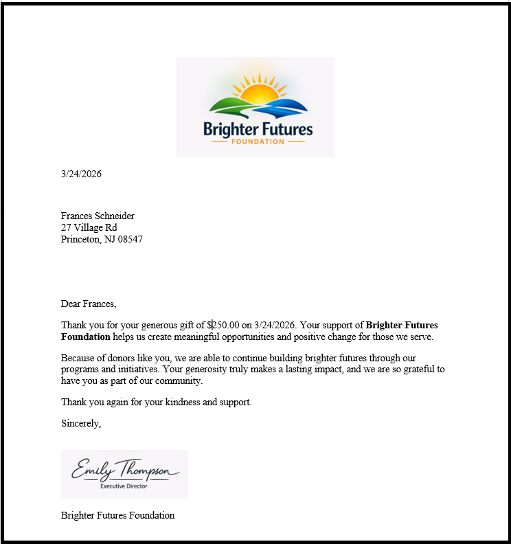 🔹 Reminder: Thank-you letters are gift-specific, so if a donor has multiple gifts that meet the criteria, their name will appear once for each gift.