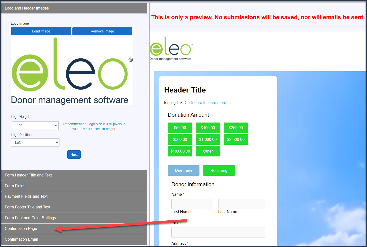 3. Click on the Form Editor and then on the Confirmation Page section on the left.