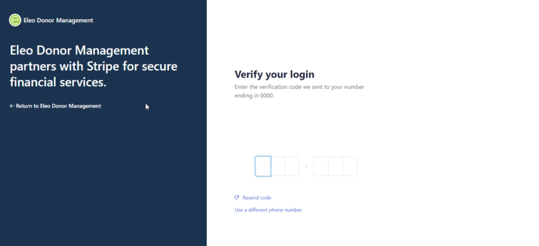 - Stripe will ask you to verify your information. Enter your verification code to continue.