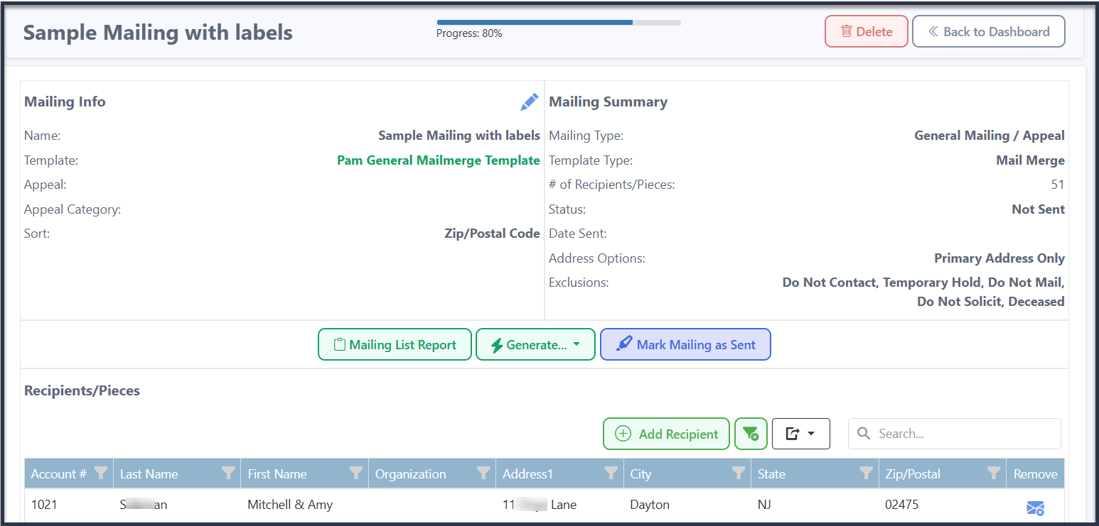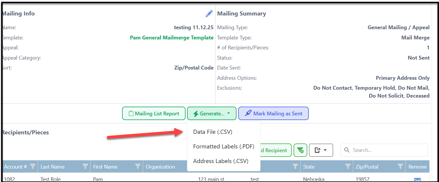 1) Go through the steps of creating a mailing using either a Letter or Mail Merge Template. If you need help with this, please see the articles we have for those topics.