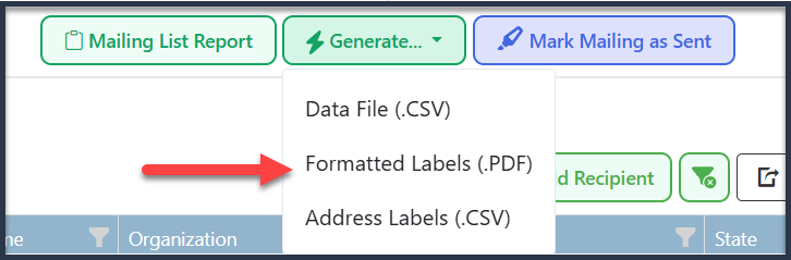 3) Click on the Generate button and then select Formatted Labels (.PDF).
