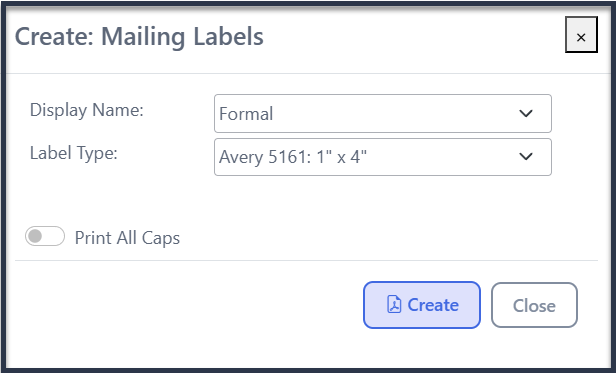 - Print in All Caps – if you would like the labels to be printed in all capital letters, select this box.