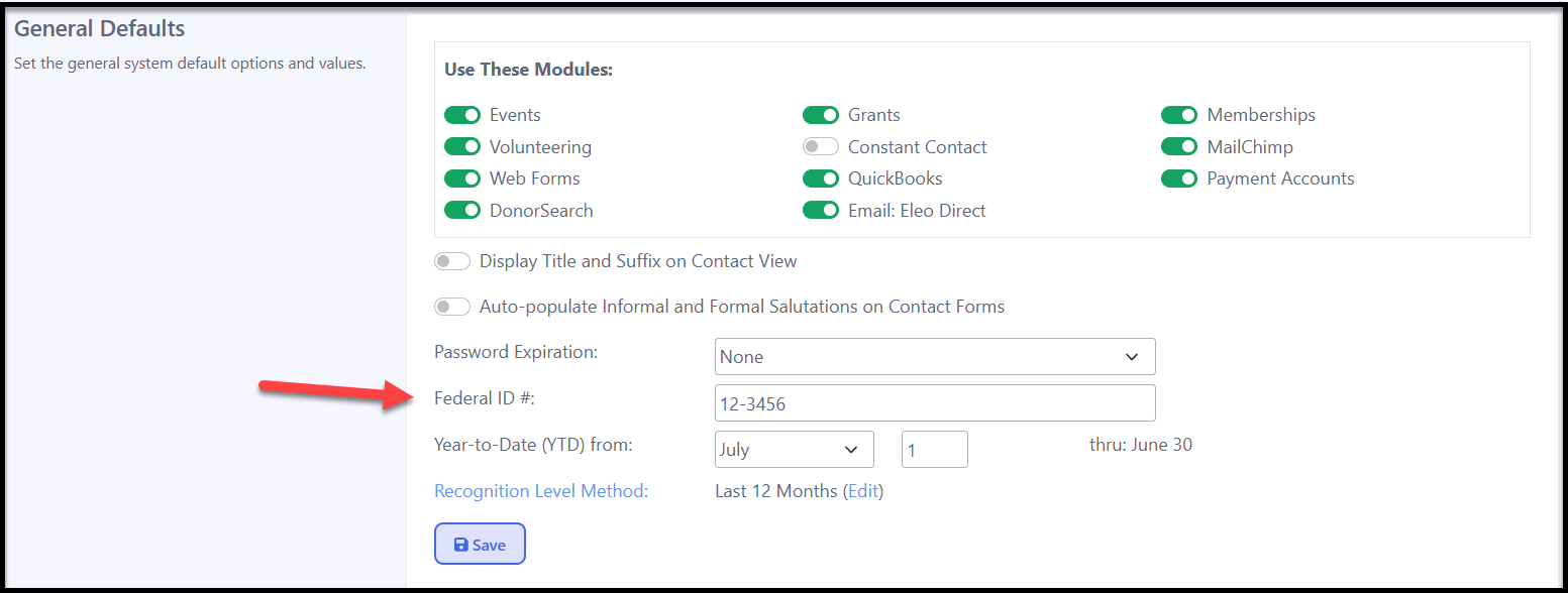Federal ID Number Setup