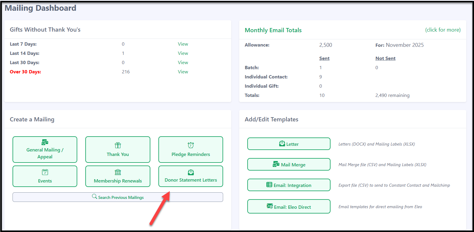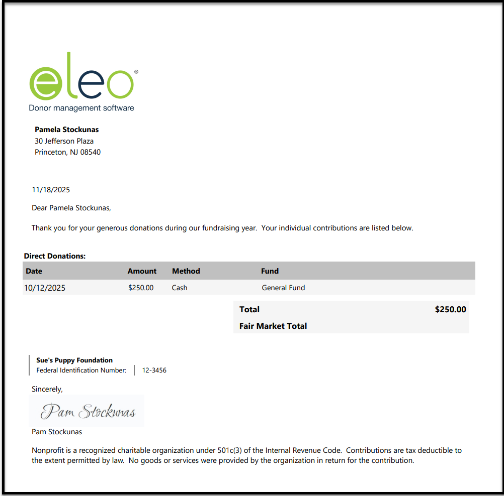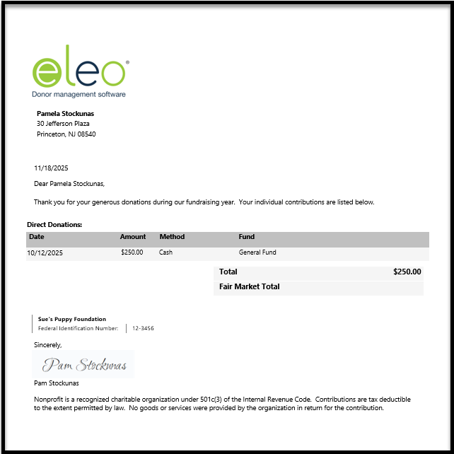 Year-end donor statements show your supporters a summary of their giving. Here’s how to create and print or email these letters right from Eleo.