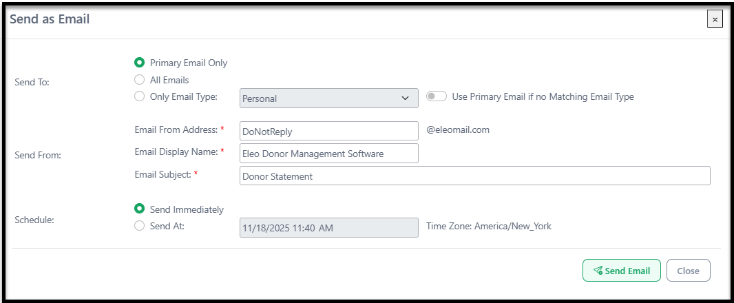 Emailing Donor Statements