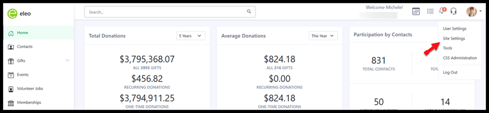 From any page in your database, select Site Settings from the dropdown.