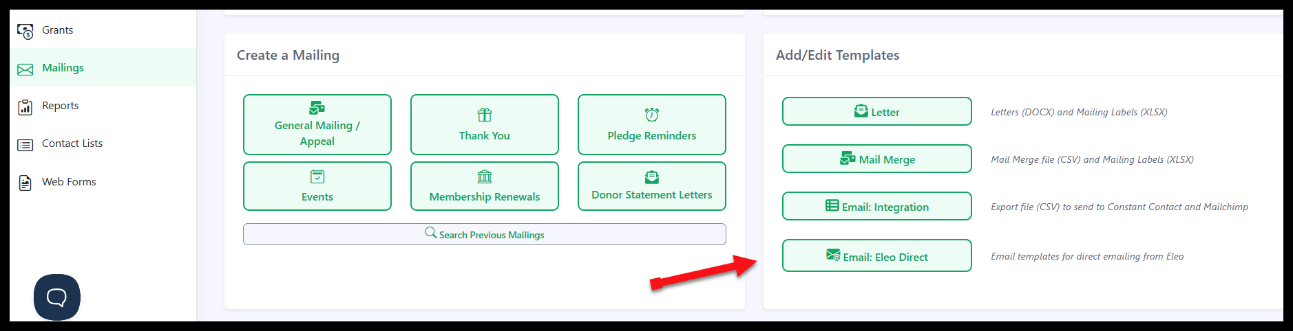 Eleo Direct is now available to use in your mailings module.