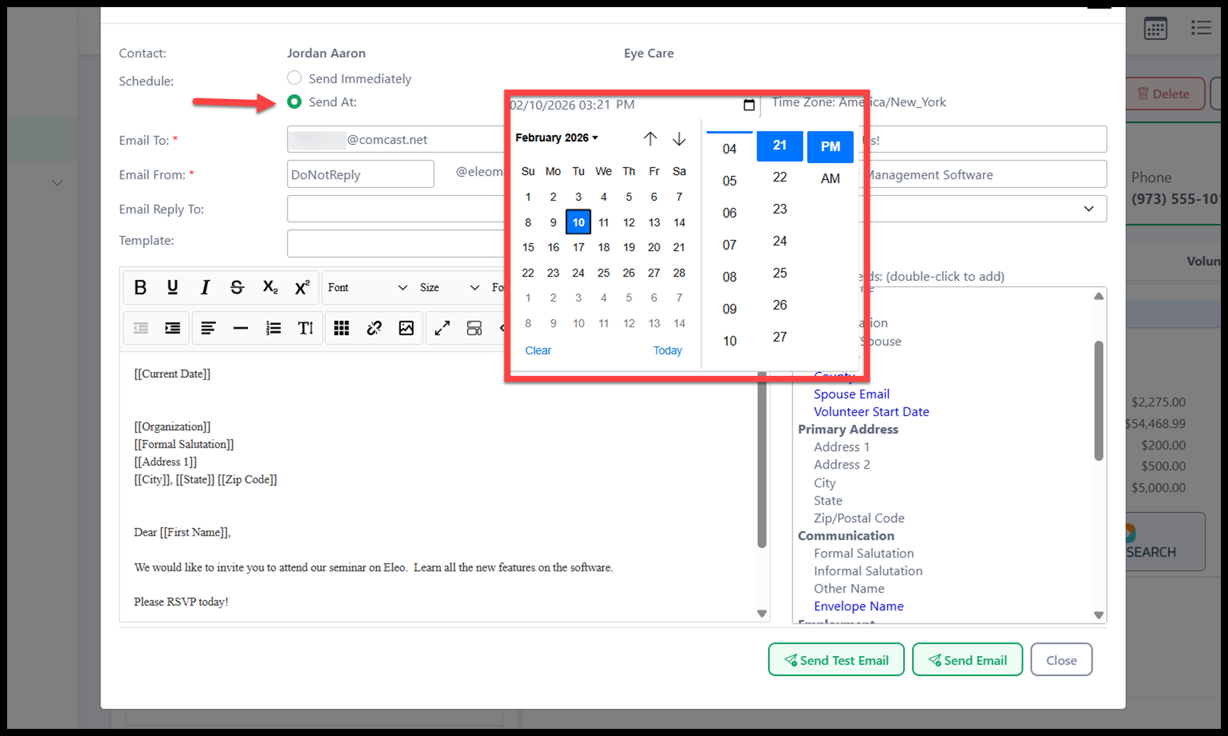 When you are finished creating your email, you can send it right away by clicking Send Email or you can schedule to have it sent at a later date.