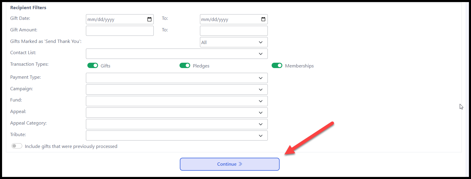 - When you are ready, click on 'Continue' to proceed. This will generate your Mailing List.